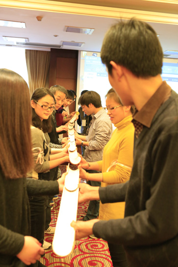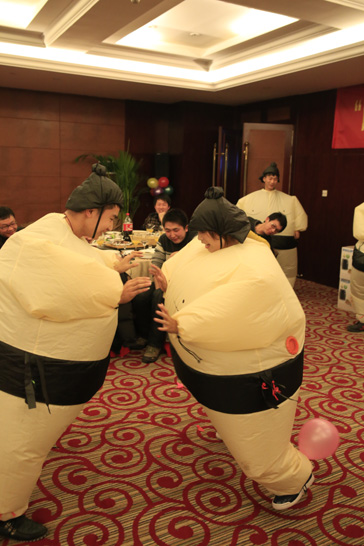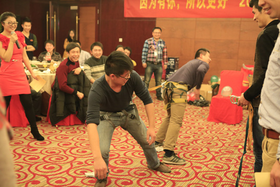 年會期間,公司各部門員工進行了專業(yè)的拓展訓練。全員被分成三小組來齊心協(xié)力的完成若干游戲任務,輕松游戲的同時,密切了各部門員工間的關(guān)系,也讓員工體會到了強烈的團隊氛圍。
