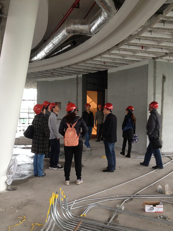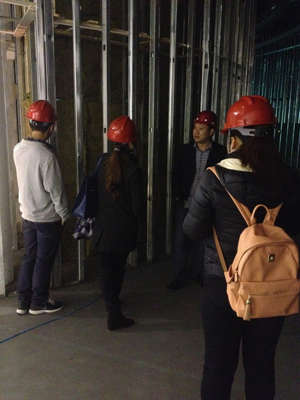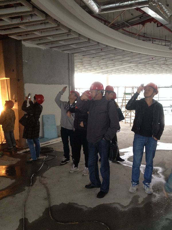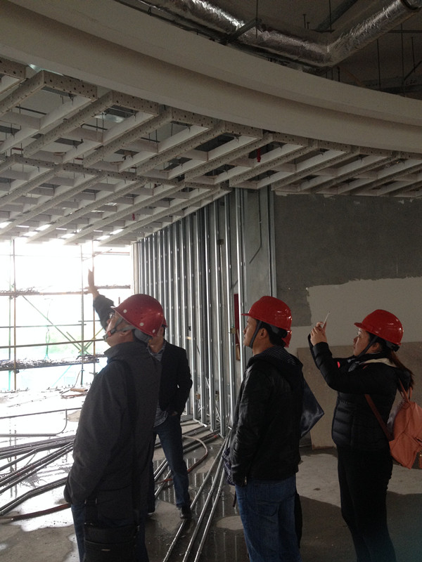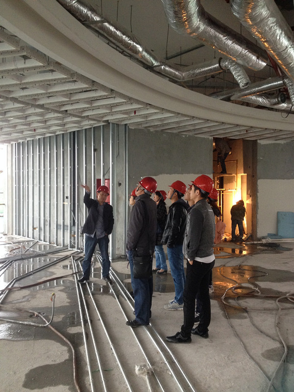 11月8日,公司組織我們招投標中心若干人來到工地實地學(xué)習(xí),在工程部沈經(jīng)理、陳經(jīng)理的帶領(lǐng)下,我們參觀了整個工地現(xiàn)場。工地現(xiàn)場已經(jīng)如火如荼的全面展開基層工作,工人都在有條不紊的工作著,項目經(jīng)理一直在耐心、詳細的跟我們介紹吊頂、門套等各個工藝和流程,尤其介紹到此次工程的吊頂?shù)牟灰,這次這個隊伍就這個頂?shù)挠霉ぴ诙ㄎ环啪上花了很大功夫了,出一點錯,就得重放。