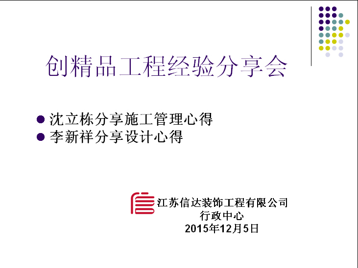 創(chuàng)精品工程經(jīng)驗分享會 |
