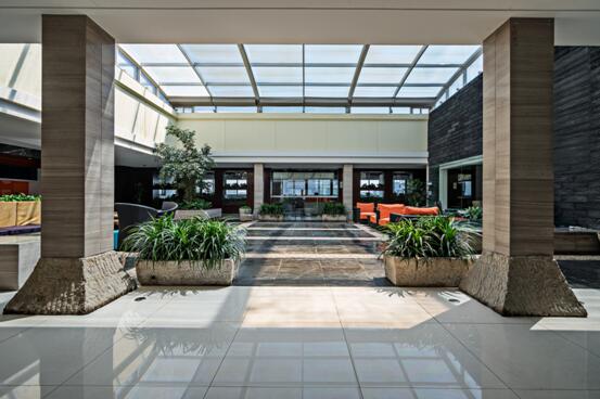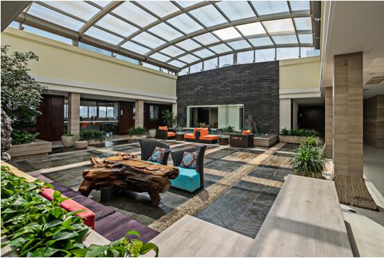 利用建筑自身特點(diǎn),設(shè)計(jì)了陽(yáng)光中庭, 中庭橫向12.3米, 橫向11.3米, 面積達(dá)到139平方, 中庭給室內(nèi)帶來(lái)了陽(yáng)光, 帶來(lái)了微風(fēng), 帶來(lái)了活力, 體現(xiàn)了公司的情懷, 人置其中, 身心愉悅, 創(chuàng)造了一個(gè)非凡的空間氛圍。